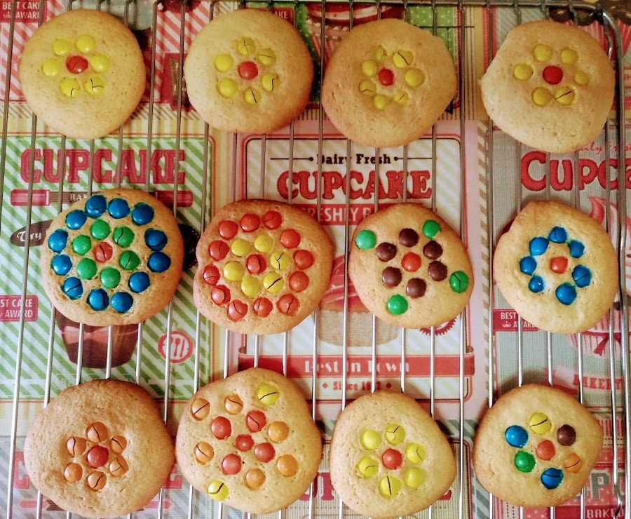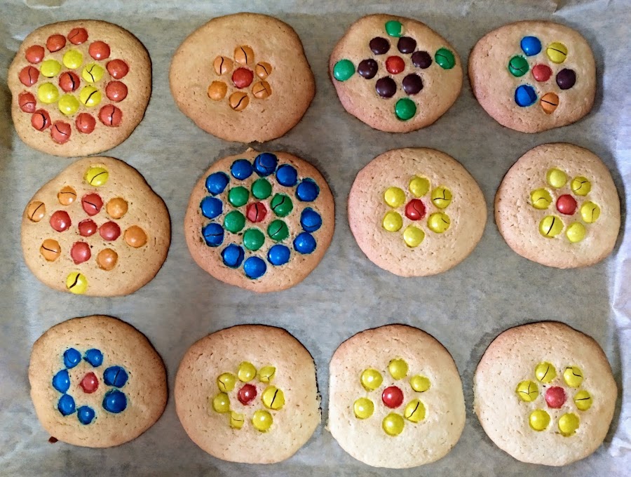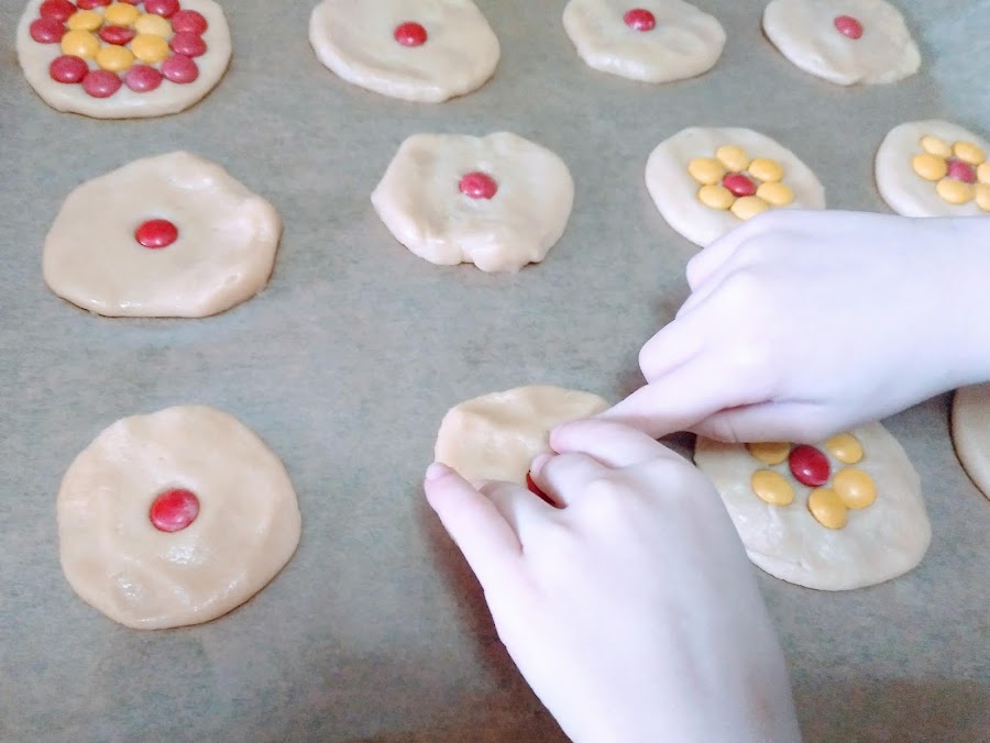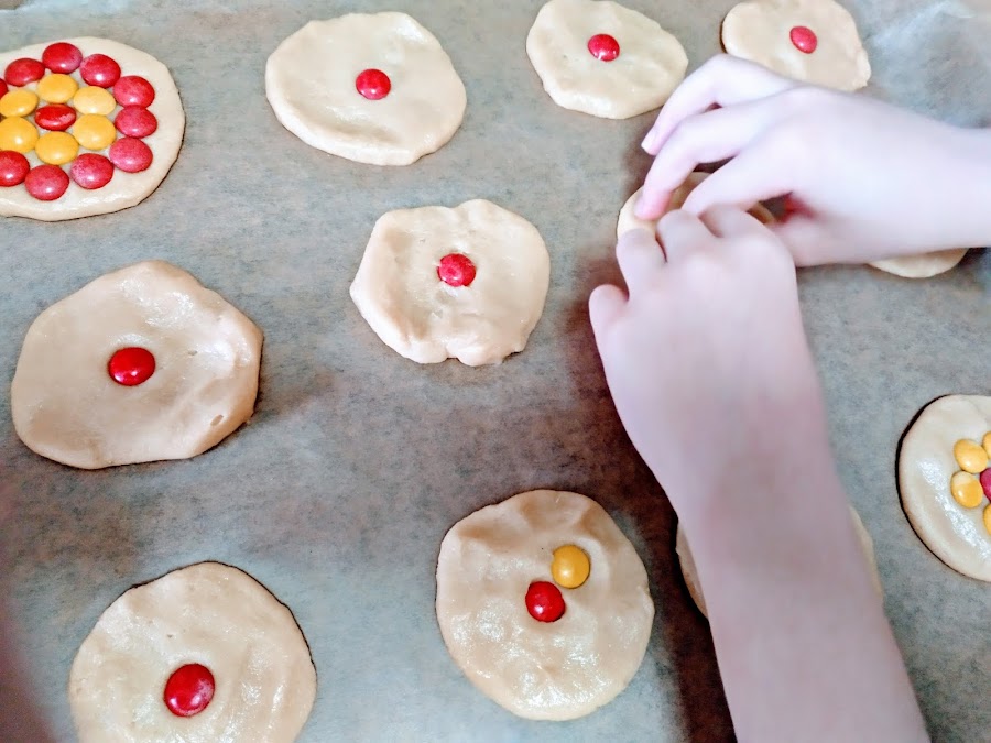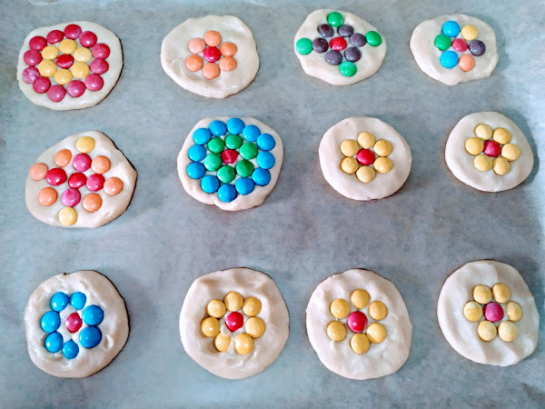 Cubrimos con las chocolatinas cada galleta presionándolos suavemente en la masa.