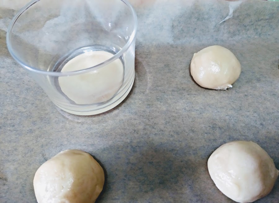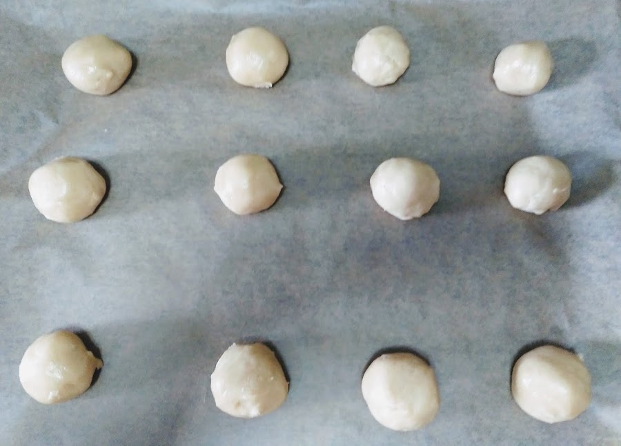 Colocamos las bolitas en la bandeja de horno dejando suficiente separación entre ellas.