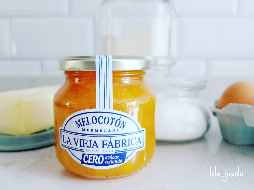 Para esta receta vamos a utilizar uno de los productos que viene en la última cajita de Degustabox. La mermelada de melocotón La Vieja Fábrica Cero azúcar está elaborada con endulzante 100% natural.