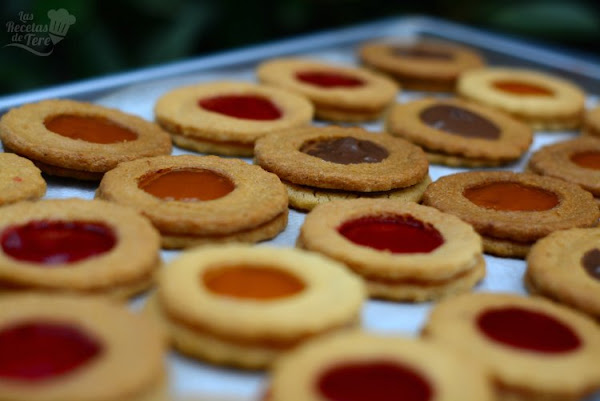 Hola a todos..ya pronto estamos en la festividad del día de todos los santos y Halloween, mi aportación este año son estas galletas dulces que están buenísimas y variadas. En Venezuela este tipo de galletas,se llaman "Reinitas"pero siempre son de fresas. Hoy las que os traigo a continuación, las hice,de mermelada de fresas, melocotón y chocolate.