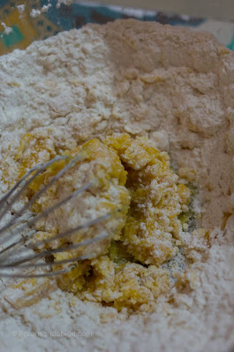 * (Sería ideal que la mantequilla esté a temperatura ambiente y que se derrita al mezclarla, pero acá estamos en invierno aún y la temperatura ambiente no ayuda mucho, así que la derretí y usé cuando ya había bajado un poco su temperatura).