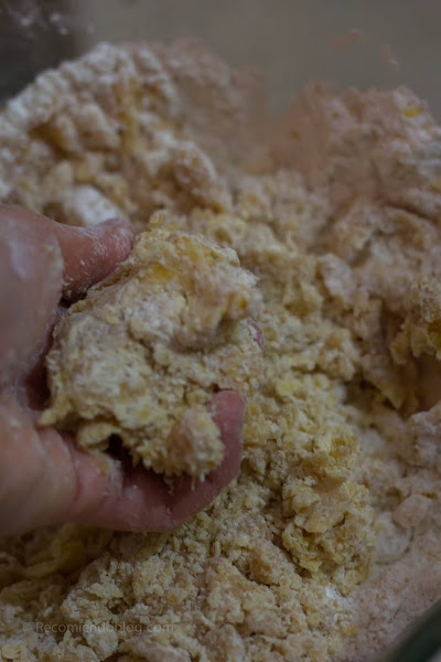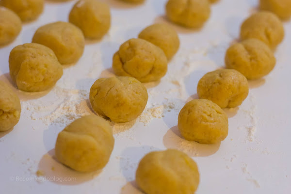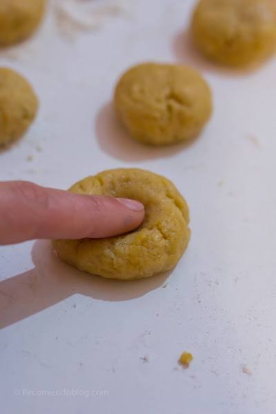 Hacer bolitas y aplastarlas suavemente. Si notas que algunas quedan más grandes, puedes sacarles un poco de masa y seguramente te saldrán un par de galletas más.
