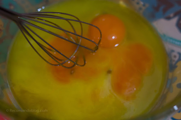 Separar las yemas de las claras y verterlas en un bowl. Derretir la mantequilla* y mezclar con las yemas, suavemente. Luego incorporar el azúcar, la esencia de vainilla y la ralladura de naranja.