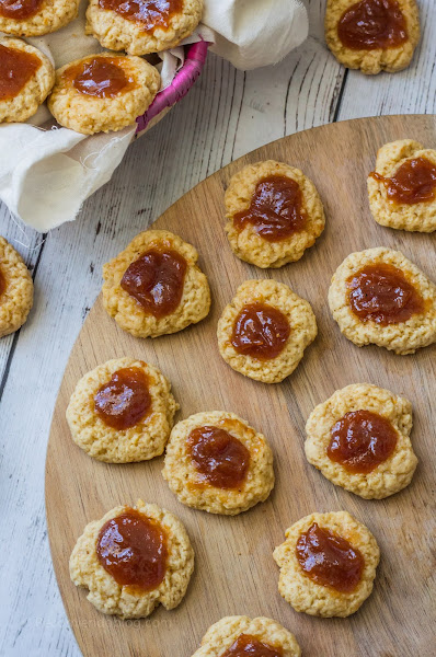 Nota: Si no encuentras dulce de membrillo, con mermelada casera también quedan increíbles. Y si buscas una opción de estas galletas sin azúcar, puedes reemplazar el azúcar de la masa por tagatosa (sería 1/4 de taza, ya que se usa la mitad de tagatosa), y utilizar mermelada sin azúcar para relleno.