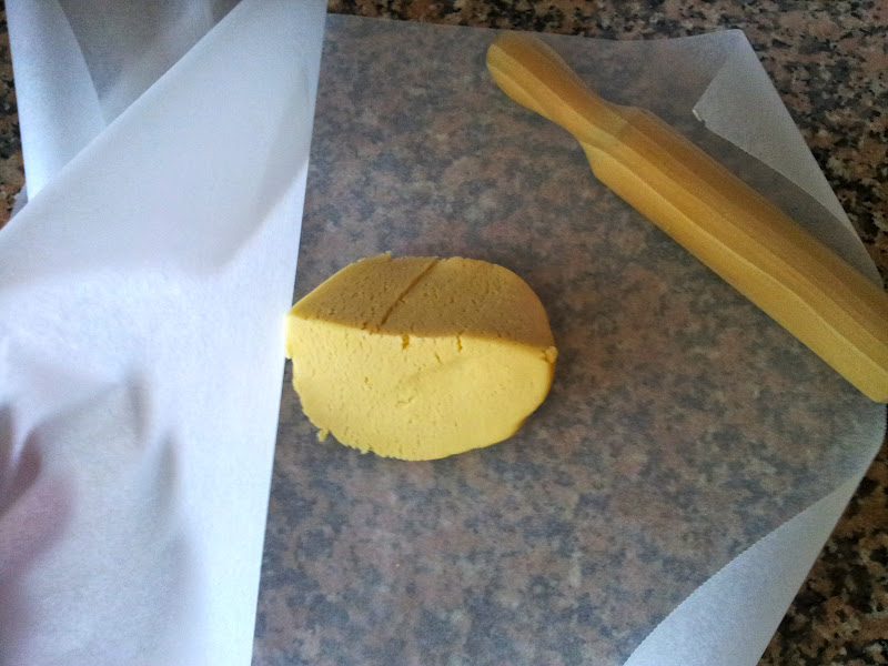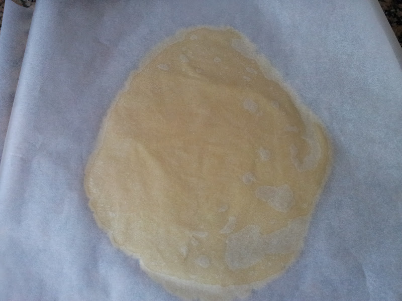 Ponemos cada trozo entre dos hojas de papel de horno y comenzamos a amasarlas.
