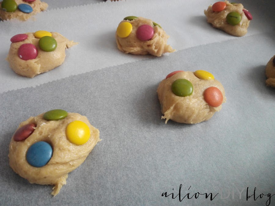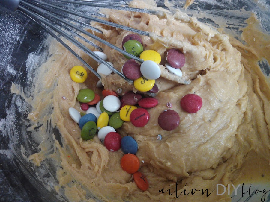 Tenía por ahí una receta de cookies tipo americanas, así que la aproveché, cambiando los chips de chocolate por los lacasitos.