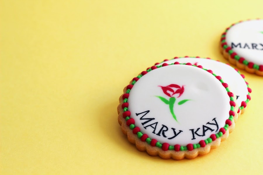 Y aquí va mi regalo para Cristina y Mary Kay con estas preciosas galletas con el logo.