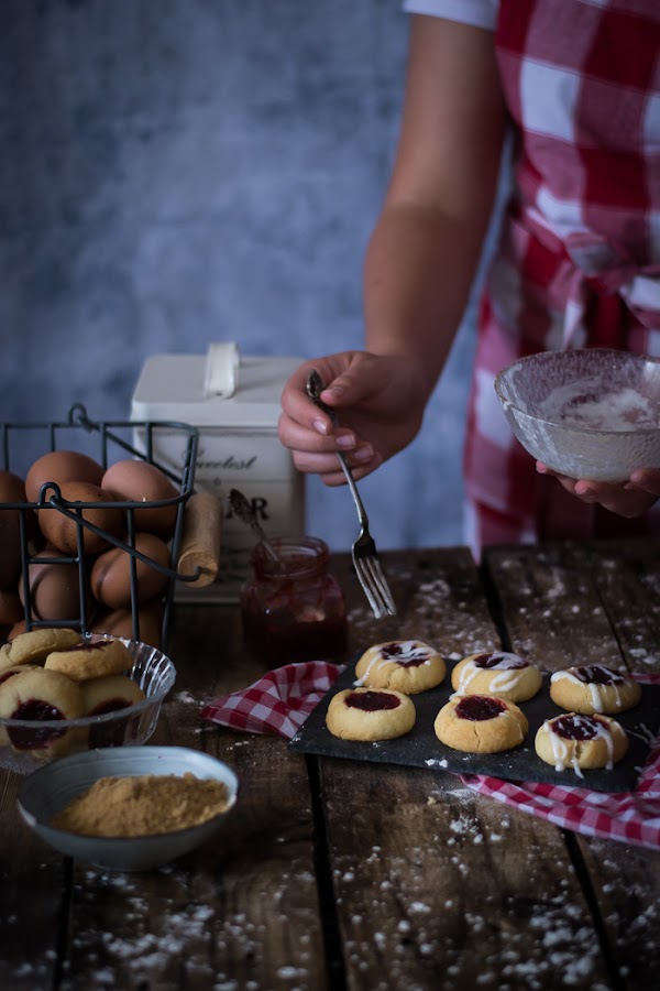 Todo empezó este verano, porque suelo dar clases de repostería en un colegio a un buen grupo de niños. Y pensando que podía hacer, me acordé estas Galletas de mermelada, porque además se hace el agujero con el dedo, ya que esa es la manera tradicional y de todos es sabido lo que le gusta a los niños meter las manos en la masa.