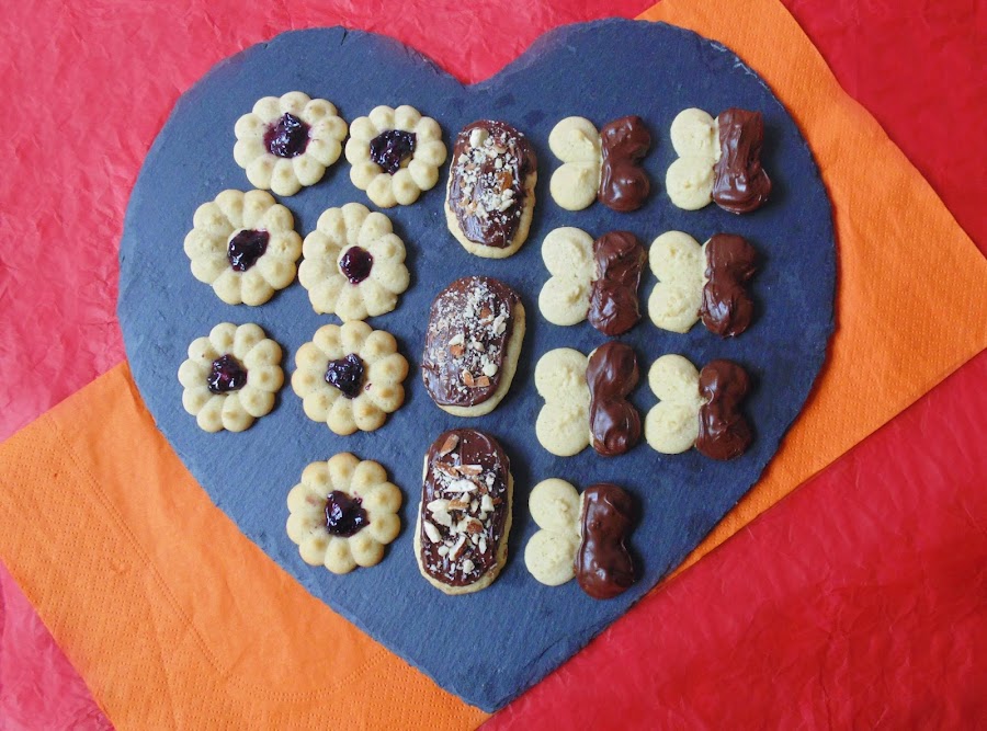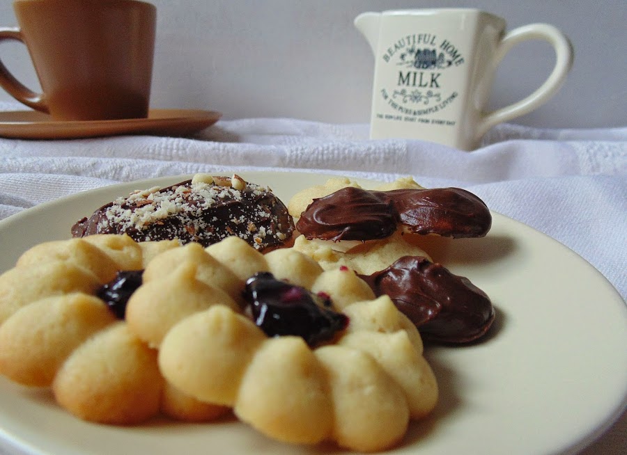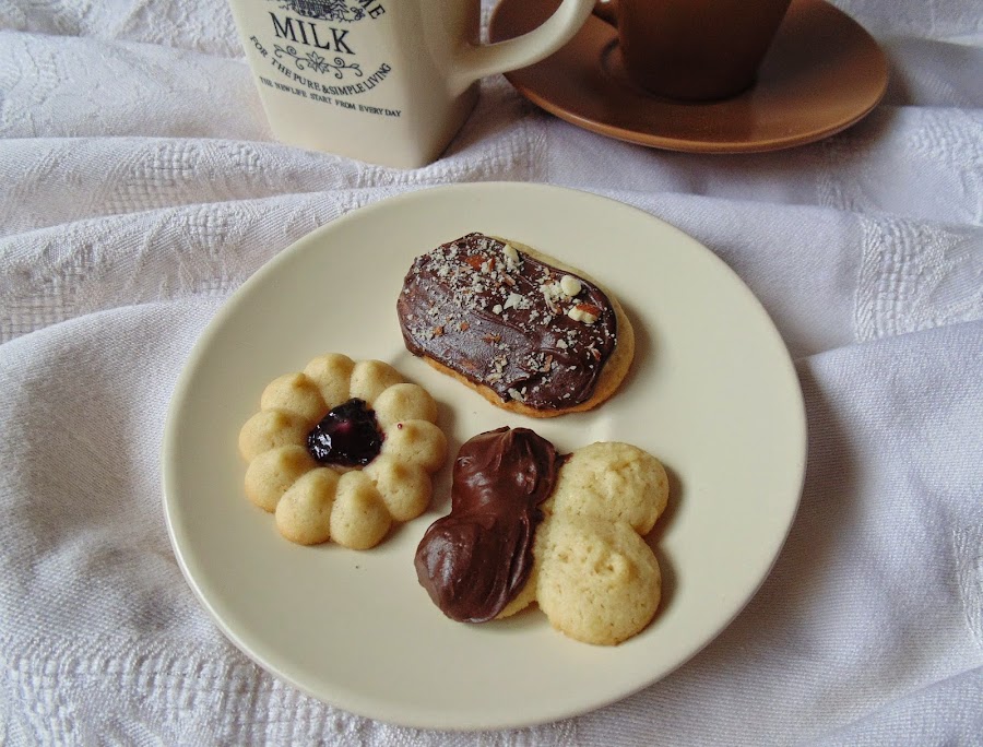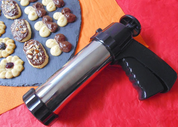 Yo no soy una gran experta con la manga pastelera, pero con este cacharro, menos aún. Os aseguro que nunca pude decorar nada con ella, por lo que se quedó olvidada en un rincón de un armario de la cocina. Porque tampoco había podido hacer galletas, hasta que mi cuñada Marta me pasó esta receta. Y entonces por fin le encontré utilidad al pobre artilugio olvidado. Si os pasa como a mí, que tenéis una de estas pistolas sin usar, es hora de que le quitéis el polvo. Si no la tenéis, no pasa nada, no hace falta que salgáis corriendo a comprar una, podéis usar una manga pastelera normal y corriente? o incluso una bolsa para congelados a la que le hagáis un agujerito en una punta para poner una boquilla? pero probad esta receta que es muy fácil y muy sabrosa.