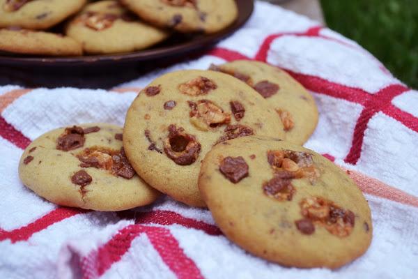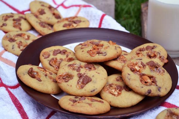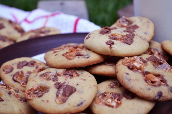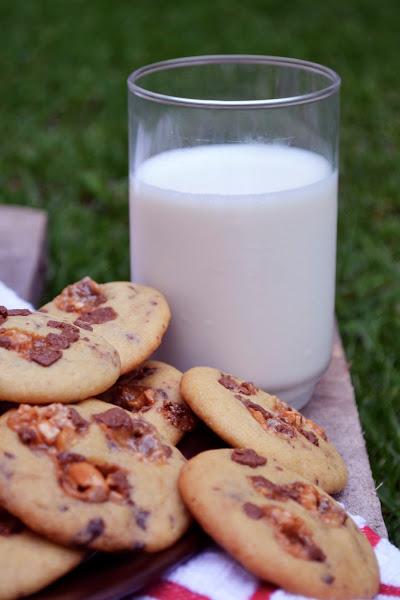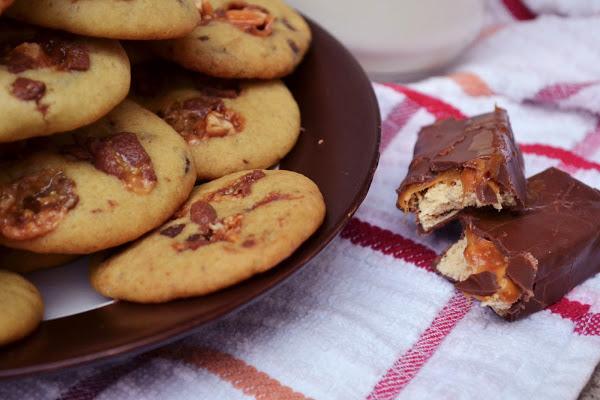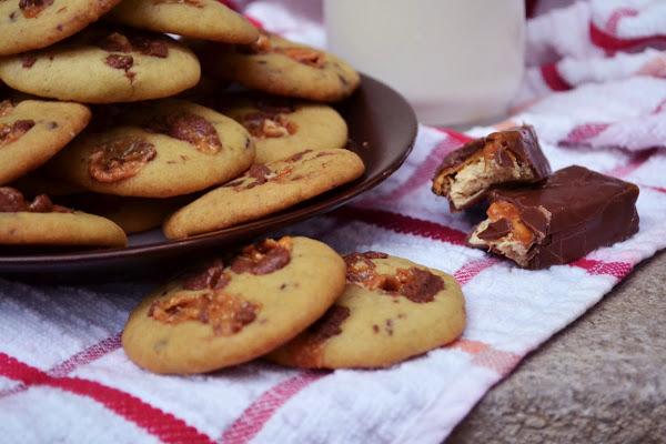 Pero además estas galletas tienen un plus! Y es que tienen SNICKERS! sí, tienen Snickers, ese chocolate delicioso con arequipe y otra cosita beige que no se que es pero que igual me encanta.