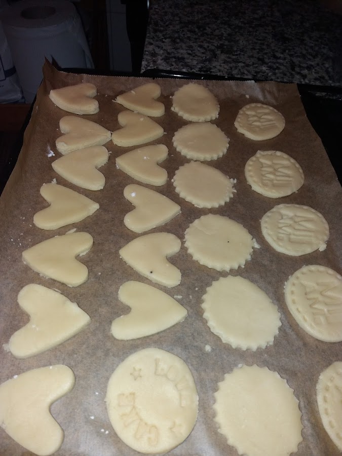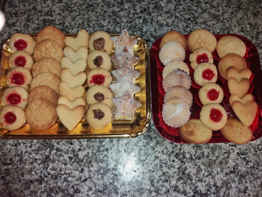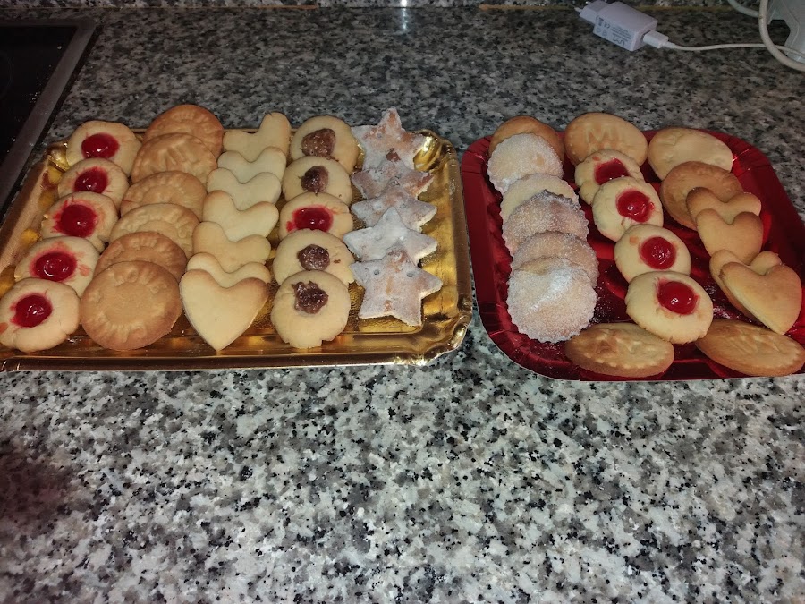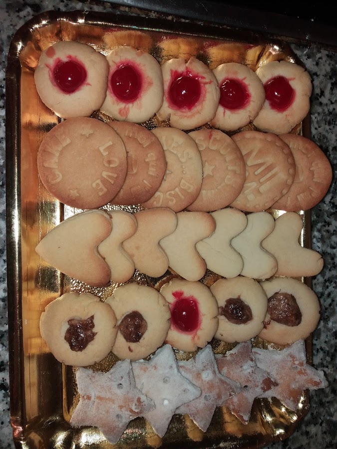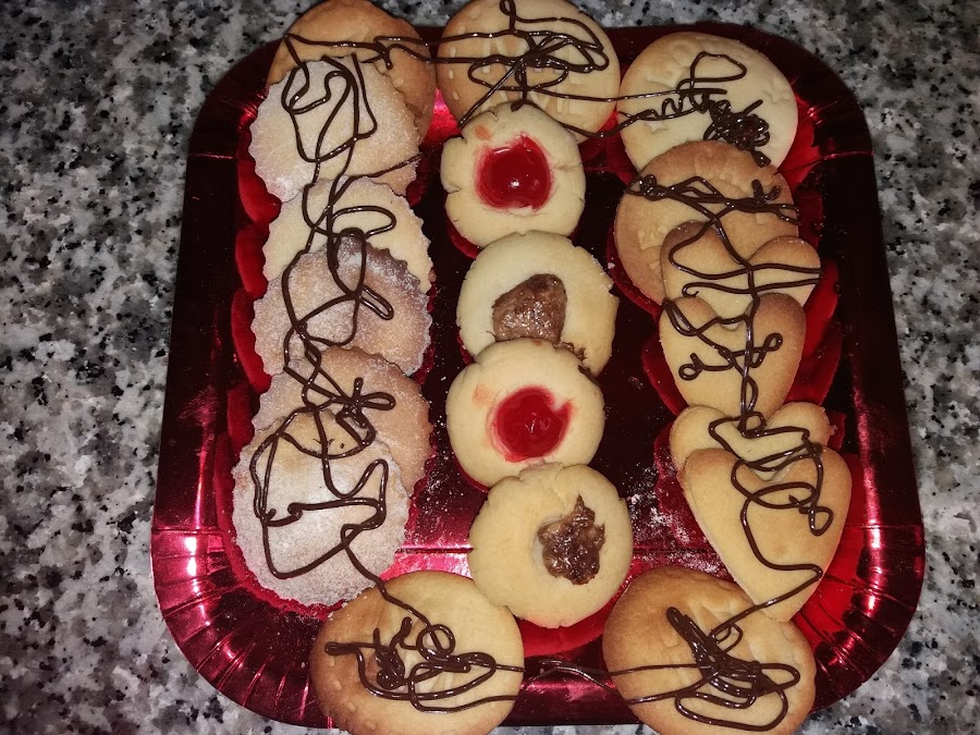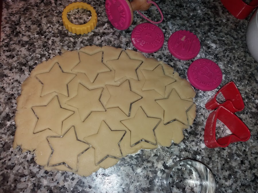 Para recortar podemos utilizar cortadores de pastas o simplemente con un vasito, otra forma muy bonita de hacerlas es haciendo una pequeña bolita que aplastaremos y hacemos un poco de hueco en donde podemos poner media guinda confitada ,roja o verde , nutela ,una , almendra o lo que cada uno considere