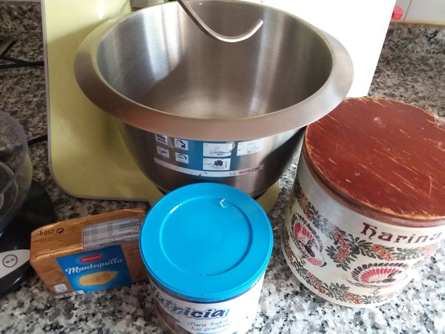 Empezamos tamizando la harina la ponemos en el bol y añadimos la mantequilla que debe estar a temperatura ambiente