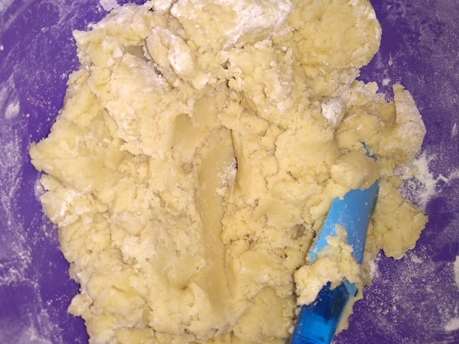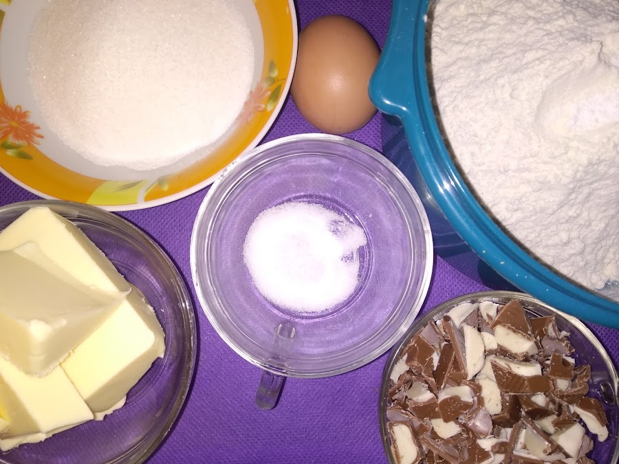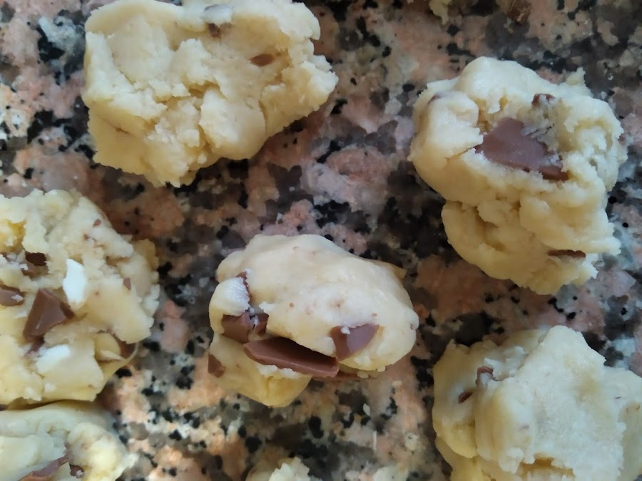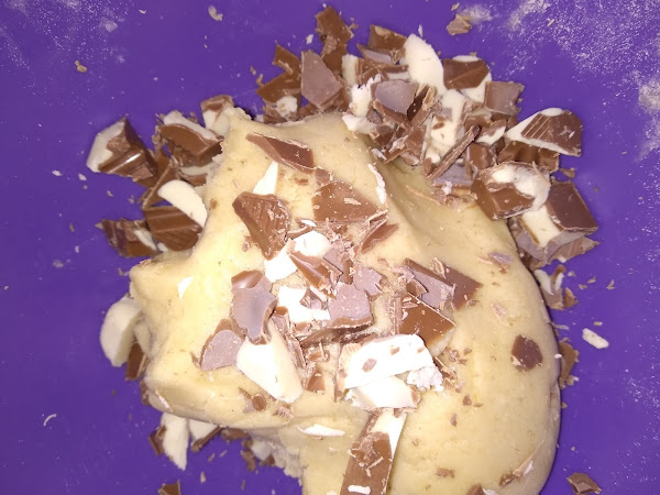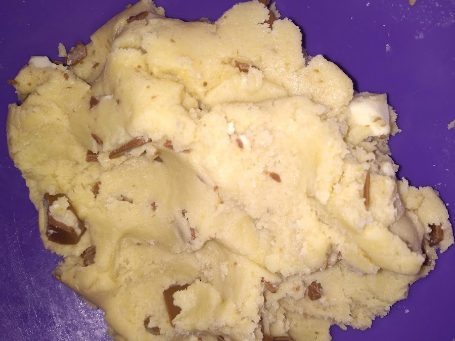 Obtendremos una masa terrosa. Añadimos el chocolate troceado. Esta masa no necesita reposo.