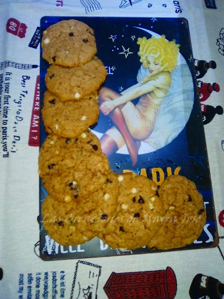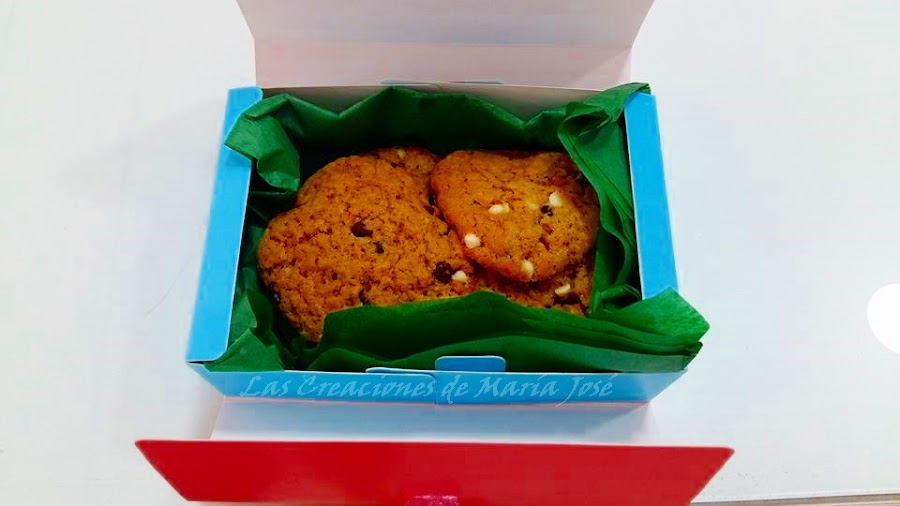 Me regalo mi hermana un preparado para hacer cookies y por fin me decidí a hacerlas, están riquisimas. ¿Que os parece la cajita con las galletas? Se las he llevado para merendar a Vinila Desing a cambio de los caramelos que les roba mi marido cada vez que vamos jajajaja y porque se lo merecen que trabajan muchisimo.