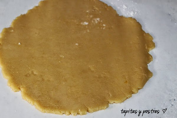 Sacar la masa dividir en dos partes. Una la podemos congelar y la otra estirar sobre un papel vegetal con un rodillo, dejándola de medio centímetro más o menos.