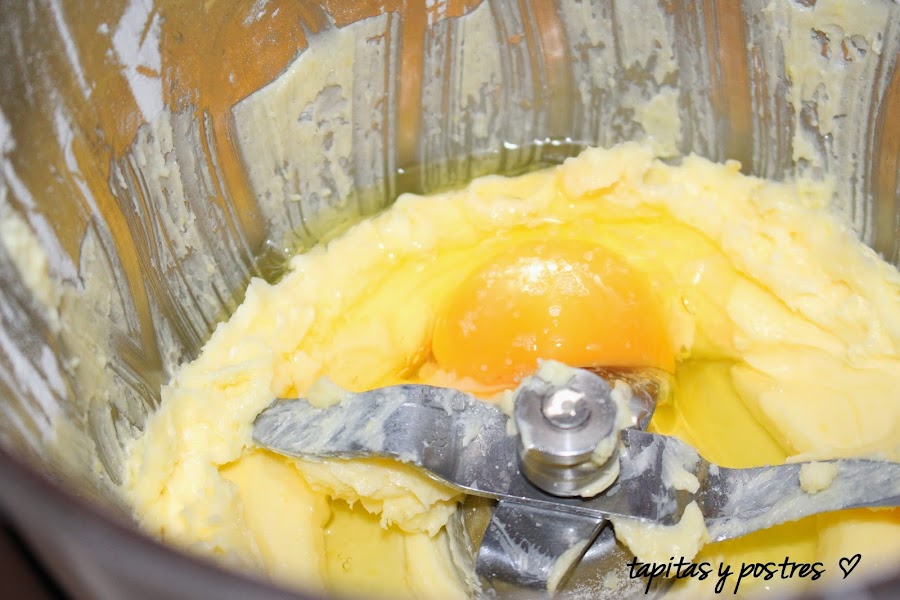 A la crema de mantequilla y azúcar le añadimos el huevo y el azúcar vainillado.