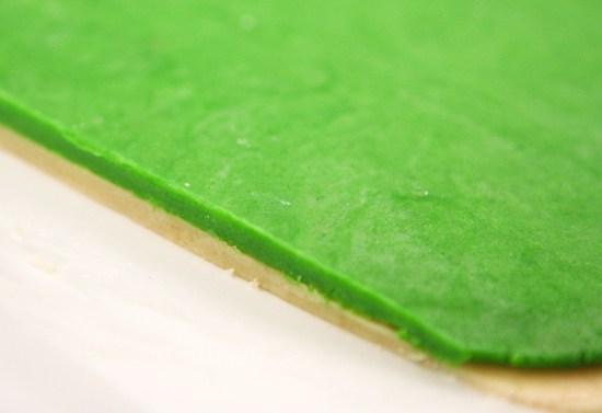 Colocar una parte en la procesadora nuevamente y agregar el colorante, 1/2 cdta de esencia de almendras y dos cucharadas de harina. Procesar hasta que se una bien.