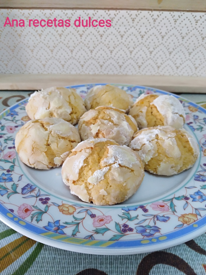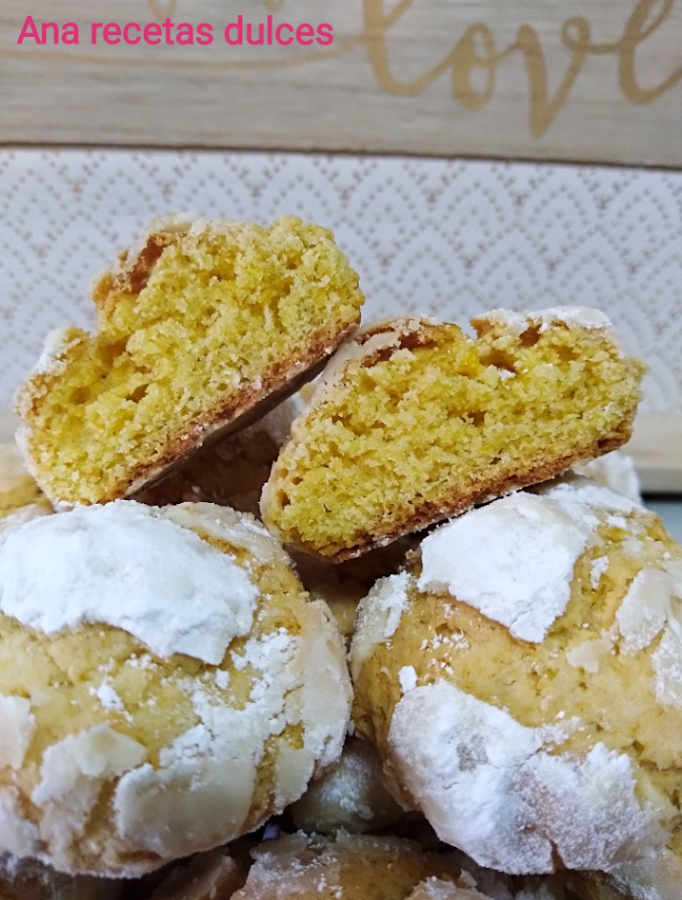 Pasado el tiempo de reposo, formamos pequeñas bolitas con la masa, las vamos rebosando en abundante azúcar glas y las colocamos sobre una bandeja forrada con papel de horno, dejando espacio entre ellas, ya que durante el horneado crecerán.