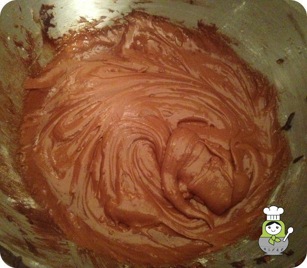 Entretanto, batimos los huevos junto con el azúcar con unas varillas eléctricas durante unos 5 minutos hasta obtener una mezcla espumosa. Le agregamos el chocolate que ya estará algo más frío y mezclamos bien todos los ingredientes. Por otra parte, mezclamos los ingredientes secos, es decir, la harina, la sal y la levadura. Añadimos los ingredientes secos a la masa y batimos todo hasta obtener una mezcla completamente homogénea.