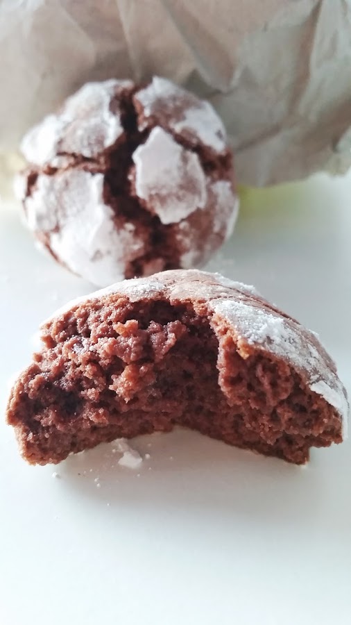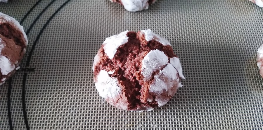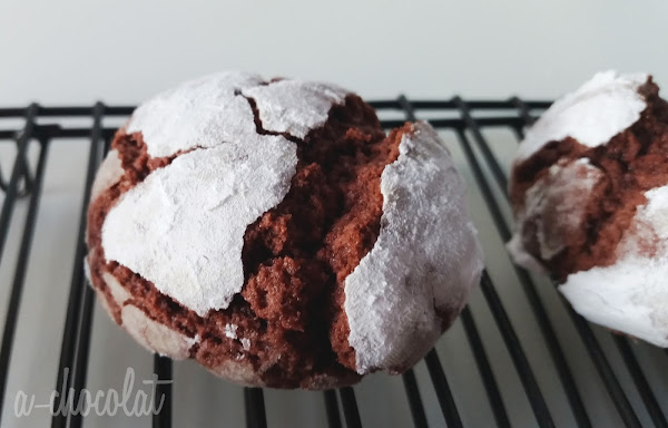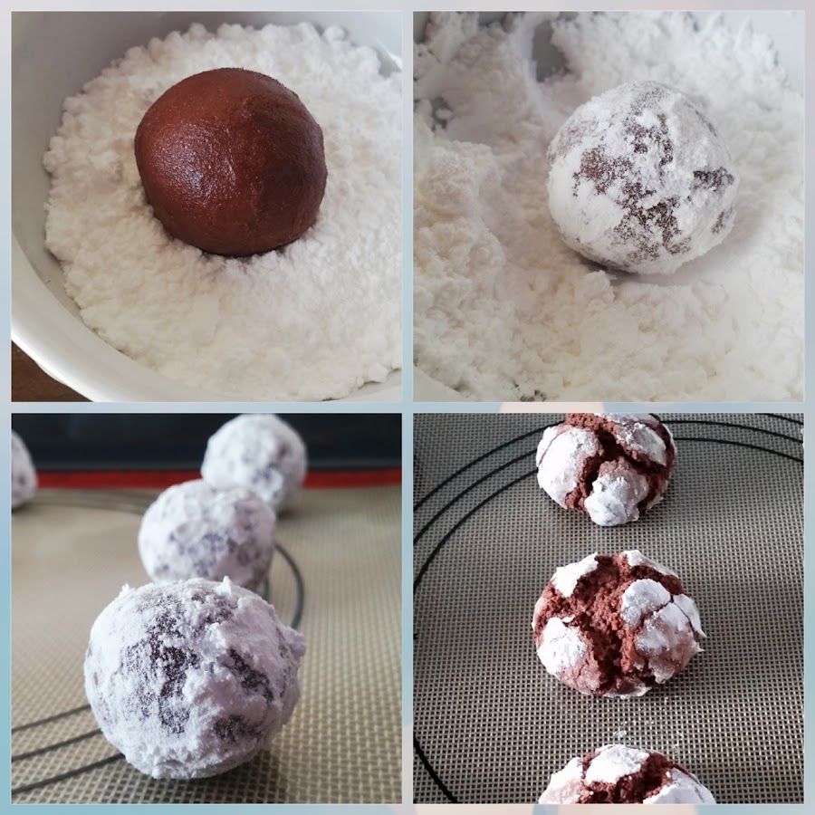 En un bol ponemos la harina, el Cacao, la levadura, el bicarbonato y la sal, mezclamos. Lo Tamizamos todo y reservamos. En otro bol ponemos el azúcar y la mantequilla, batimos hasta que se integren bien, añadimos el huevo y seguimos batiendo, después la esencia de vainilla, la leche y el jugo de limón, ahora echamos un poquito de colorante rojo, veréis que cambia ya el color de la masa. Echamos poco a poco la harina y mezclamos hasta conseguir una mezcla homogénea. Lo dejamos en la nevera, tapado con papel film, durante 2 horas. Precalentamos el horno 175°C, calos arriba y abajo. Sacamos la masa de la nevera y vamos haciendo bolas de unos 30 gr. Las Rebozamos en azúcar glass y las vamos dejando en la bandeja del horno (sobre papel de hornear), dejando espacio entre cada bola. Horneamos durante 13 minutos. Pasamos las galletas a una rejilla y dejamos enfriar.