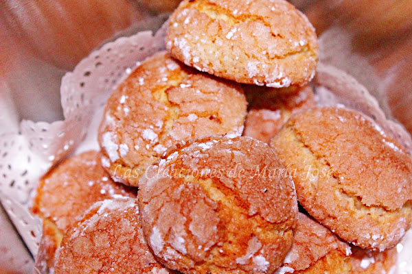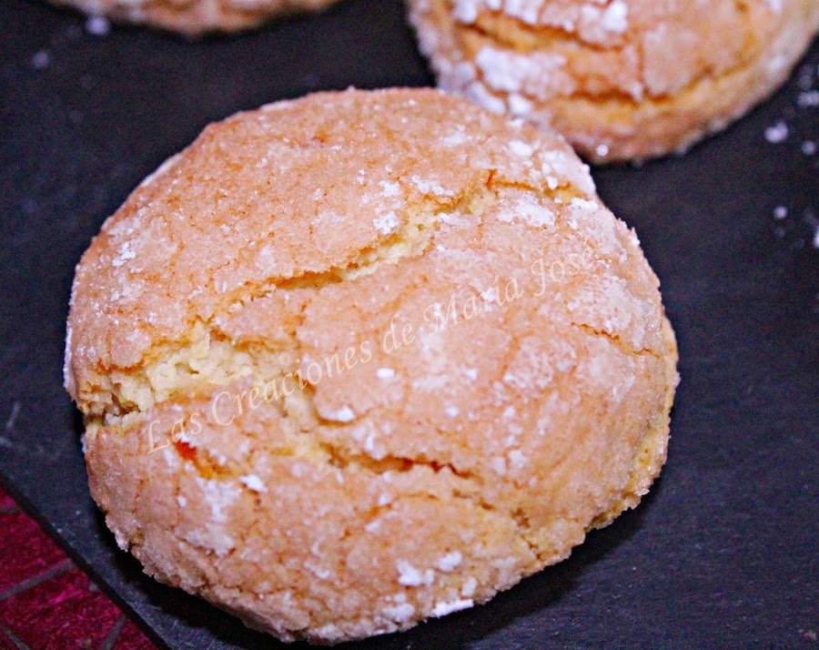 Hacer bolitas de unos 25g aproximadamente, rebozarlas con azúcar blanco y después con azúcar glas y ponerlas un poco separadas sobre una bandeja de hornear con papel de horno o con tapete.