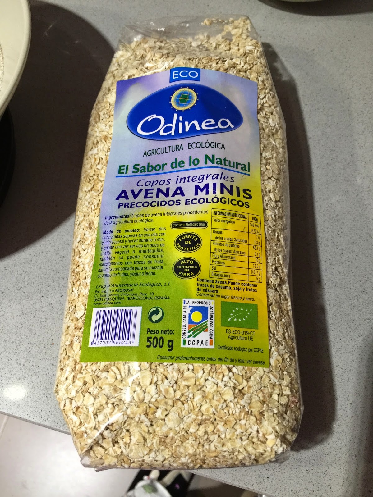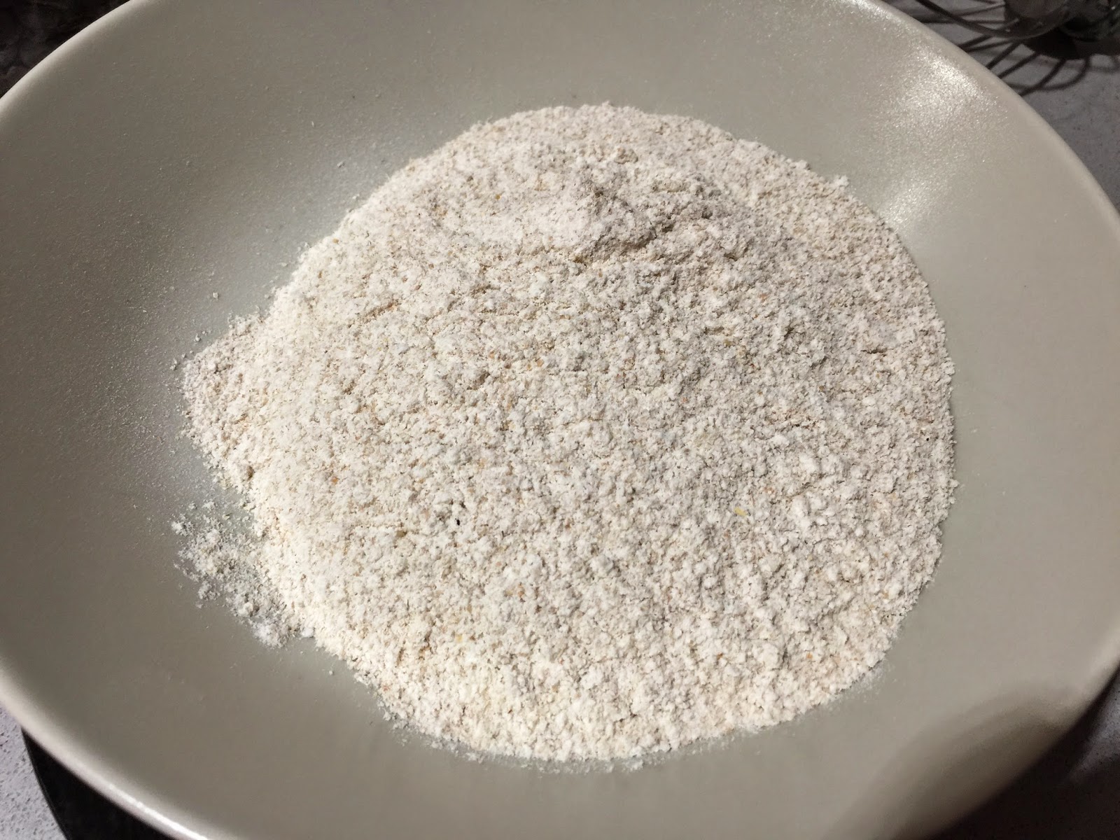 3. Mezclamos la harina integral con la levadura. Añadimos la harina con la levadura y los copos de avena e integramos del todo. Nos debe quedar una masa con una consistencia densa.