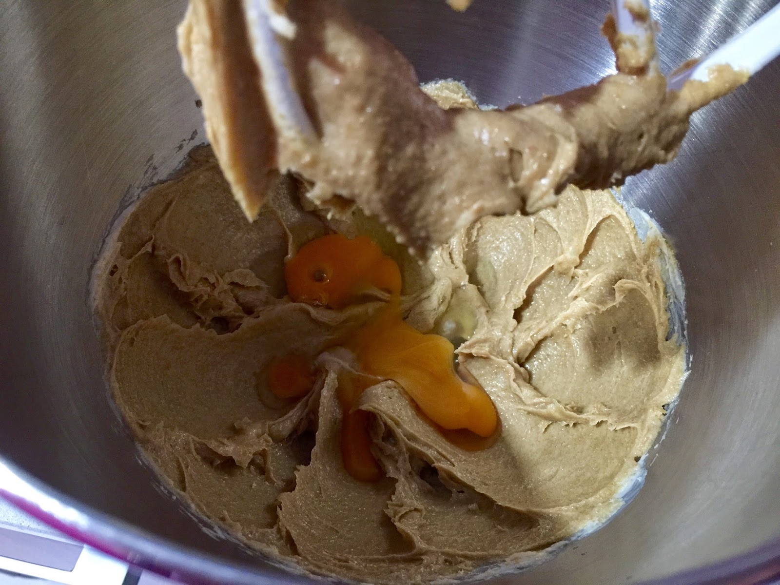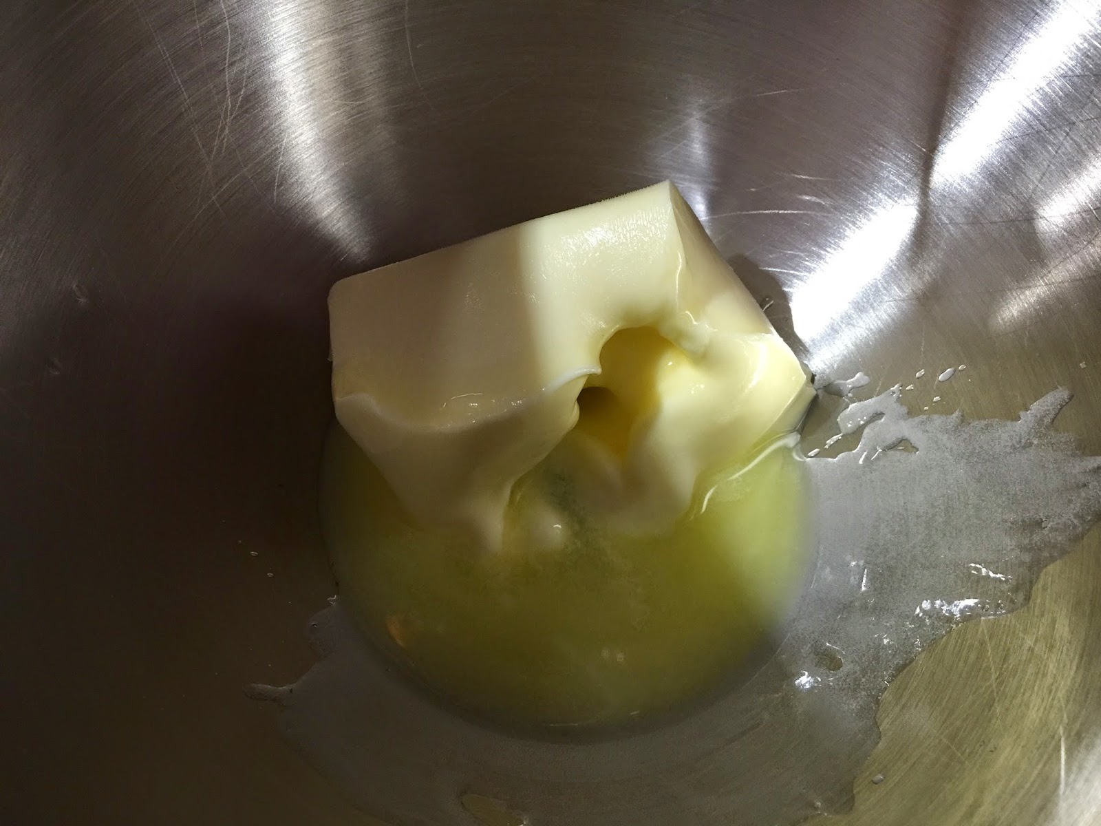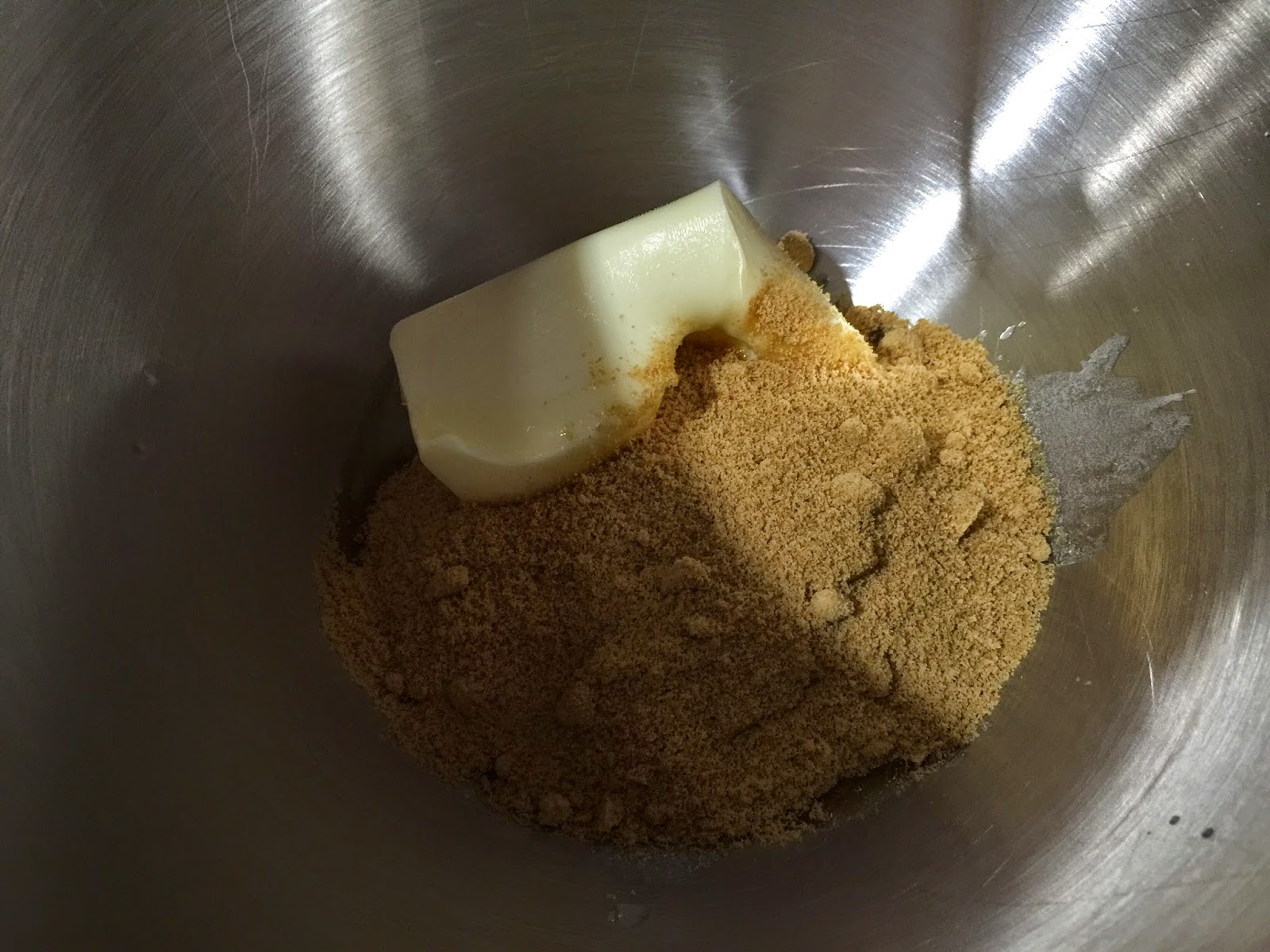 1. En un bol mezclamos la mantequilla, que debe estar en punto pomada con el azúcar moscovado. Batimos a velocidad media hasta que se forme una crema densa.