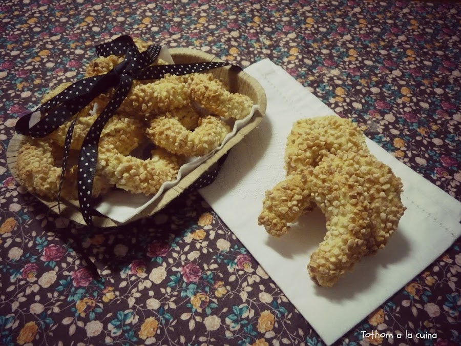 La peculiaridad de estas galletas croatas es la forma de media luna. Pero creo que debe ser típico del pais ya que he encontrado más galletas con esta forma, lo único que cambiaban eran los ingredientes. Suelen hacerlas también con nueces (muy utilizadas para postres) o simplemente rebozadas en azúcar glass.