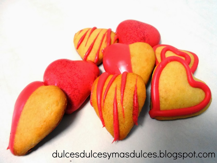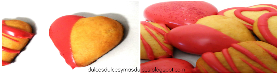 Para estas galletas de San Valentín, hemos optado por una cobertura de chocolate blanco, teñido de rosa.