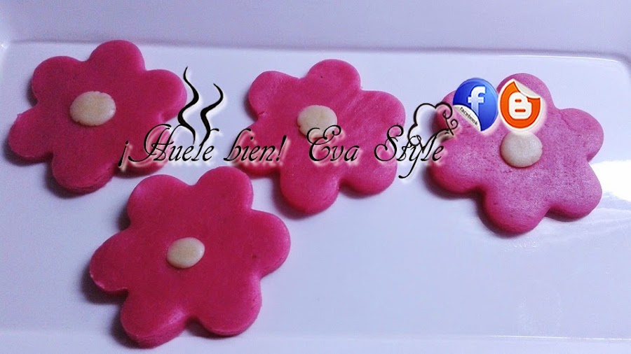 Si hacemos galletas con masa roja, las decoramos con un pellizco de masa normal en el centro.