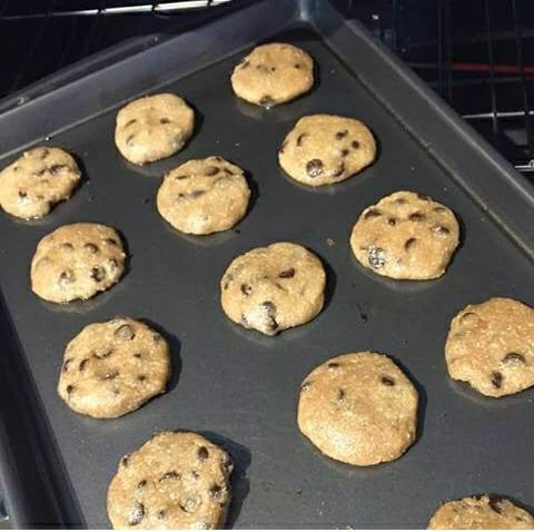 Coloca aproximadamente una cuchara copada de masa sobre la bandeja para hornear sin engrasar. Deja un espacio entre ellas de aproximadamente 2” de distancia, ya que se extenderán un poco mientras están en el horno. La mayoría de las bandejas para hornear pueden contener 12 galletas, por lo que tendrás que volver a usar la bandeja un par de veces más.