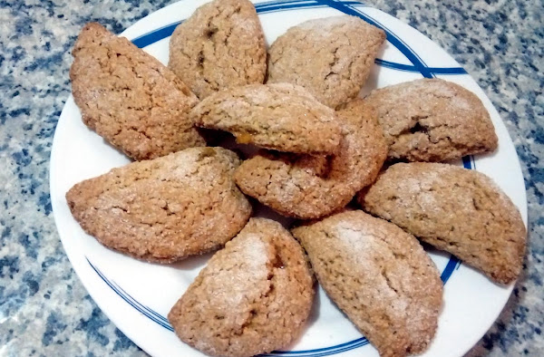 Las galletas rellenas, cuando estén formadas las masa redonda y plana se pone una pequeña porción de la mermelada en el centro y se dobla como una empanadilla, se aprieta los bordes y se espolvorea con azúcar.