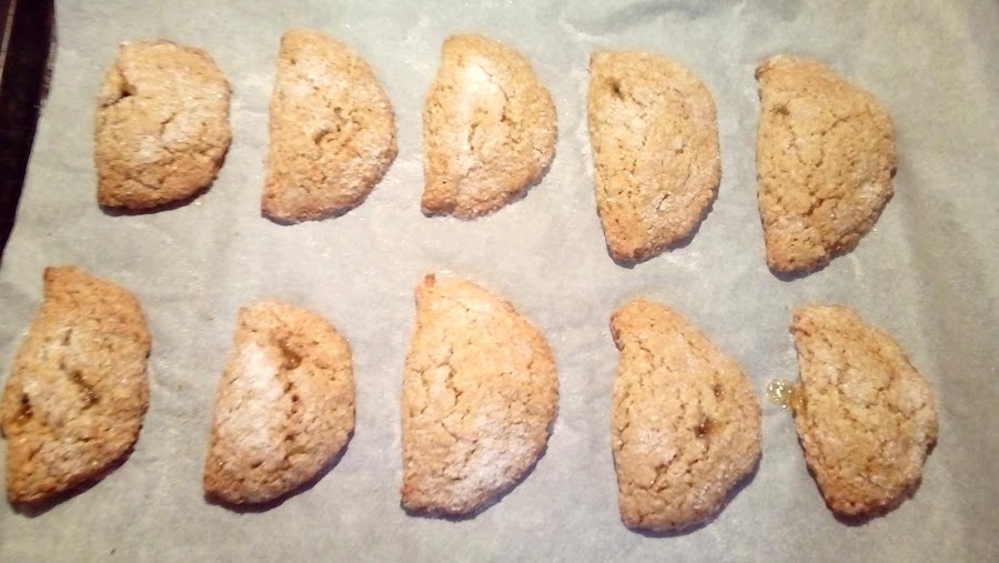 Mermelada de naranjaSe mezclan los ingredientes menos la mermelada. Se deja reposar 15 minutos, mientra se prepara una bandeja de horno con papel de horno y se ponen en ella, se cuecen unos 15 minutos a 180 grados.