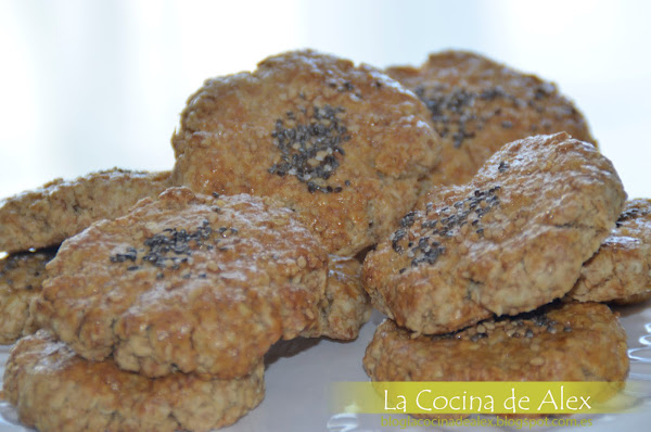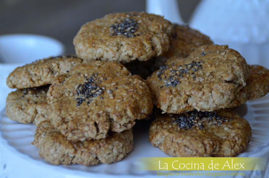 Batimos el segundo huevo, pintamos las galletas con la ayuda de una brocha y espolvoreamos por encima con el resto de las semillas de sésamos o con las semillas de Chía. Horneamos durante 12 min y luego subimos el horno a 200º durante 5 minutos mas o hasta que estén doradas. Retirar y dejar enfriar sobre una rejilla.