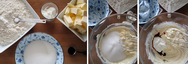 En un bol, trabajamos la mantequilla hasta que esté muy cremosa. Añadimos el azúcar y mezclamos bien. Incorporamos el yogur y la vainilla. Tamizamos la harina, junto con la sal, y mezclamos con una cuchara o una lengua poco a poco. Cuando la masa se empiece a amalgamar, terminamos de unirla con la mano hasta que se forme la pella (recuerda no amasar en exceso para que la masa no se vuelva elástica y pierda textura). Envolvemos en papel film y enfriamos en el frigo hasta que endurezca.