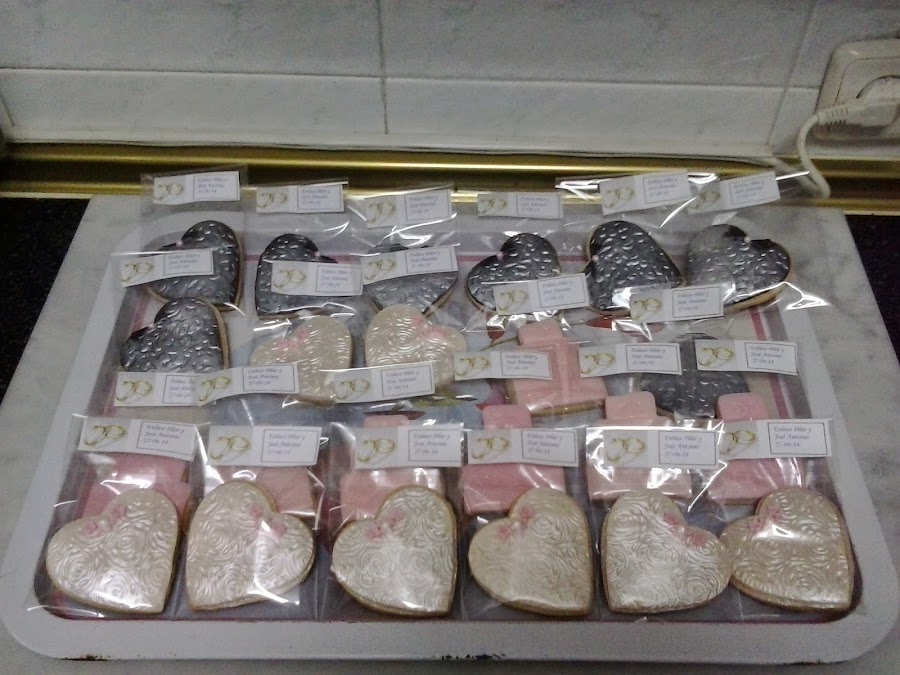 Me apetecía llevarle un detalle dulce a mi amiga y como la ceremonia iba a ser en plan familiar, pues pensé que la mejor opción serían las galletas, para que las repartiera a modo de detalle, entre todos los asistentes a la boda.