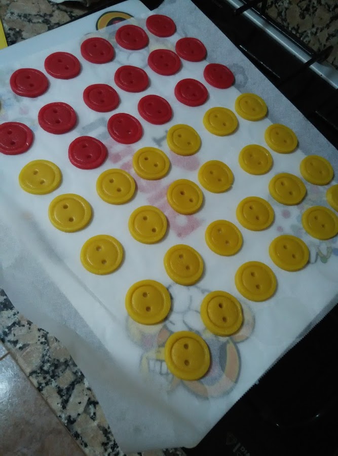 Hornear a 180 grados unos 5 minutos. Ver que no se doren. El color amarillo siempre se tuesta más, aviso porque siempre me pasa y es normal.