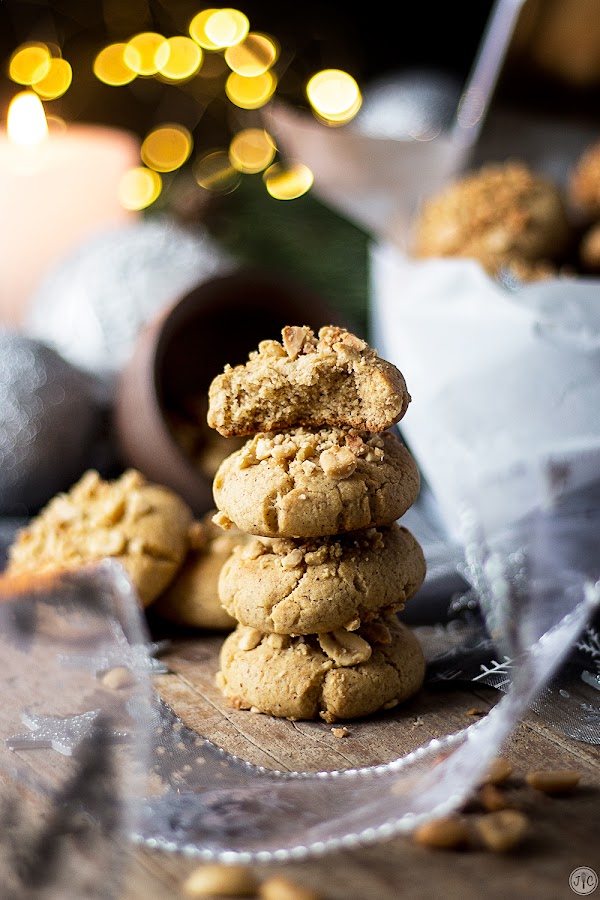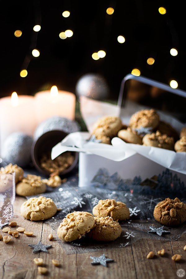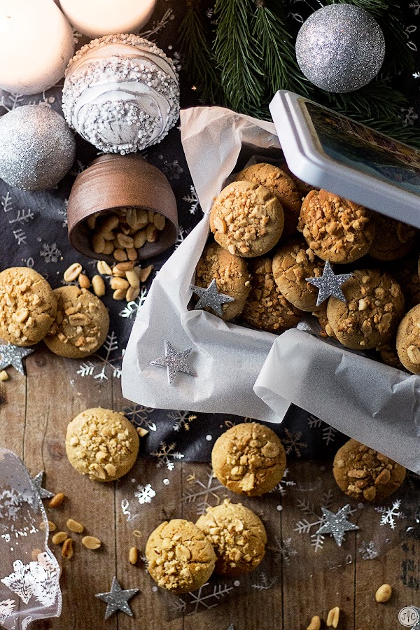 Los cacahuetes y la mantequilla de cacahuete son dos ingredientes muy usados en la repostería norteamericana y cada vez se usa más en las de todo el mundo. Estas galletas de cacahuete tienen como ingrediente principal los cacahuetes, que le dan el toque definitivo a estos dulces aperitivos. Estas galletas son típicas de las fechas navideñas en EEUU, aunque cada vez más se consumen durante todo el año, como suele pasar con los dulces que triunfan.