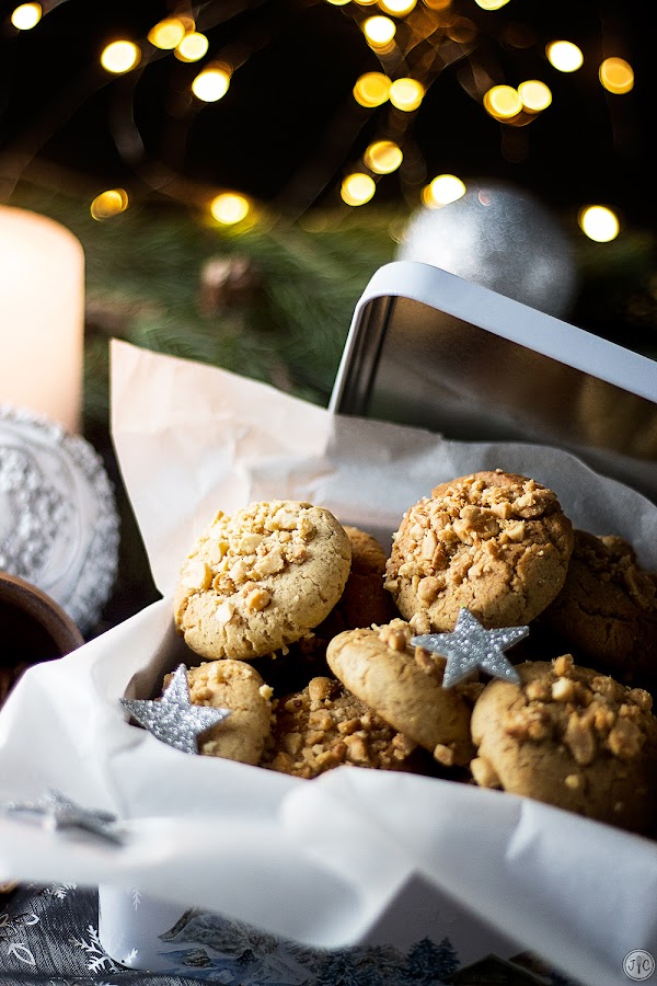 Estas galletas de cacahuete son una opción perfecta de regalo estas navidades. Imaginaos una caja metálica, con papel de hornear por dentro (como en la foto) y envuelta en un bonito papel de regalo. Seguro que se convierte en una opción perfecta para sorprender a amigos y familiares en nuestras comidas o meriendas navideñas. ¡Tenedlo en cuenta! Los regalos caseros son cada vez más una opción perfecta para sorprender.