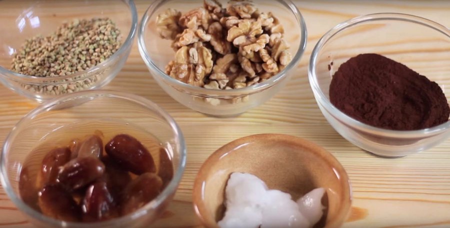 ¡El proceso es muy sencillo! Primero pon en una trituradora o batidora de vaso el trigo sarraceno y tritúralo hasta dejarlo bien molido. Resérvalo en un bol. Luego, en la misma batidora, pica las nueces para que queden en trocitos pequeños y añádelas al bol con el trigo molido.