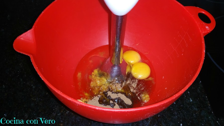 Una vez mezclado muy bien todo con la batidora incluímos la harina de avena poco a poco y vamos removiendo bien.