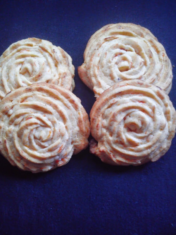 Ahora se pueden hacer galletas normales, simplemente, con una cuchara echas un montoncito y lo aplastas, hasta darle la forma que quieras. O las haces en forma de flor, para esto necesitas una manga pastelera y una boquilla rizada. Es muy fácil, se empieza por el centro y vas haciendo círculos. A que quedan bonitas??? Ahora se meten en el horno, precalentado a unos 160º, unos 10 minutos. Id vigilando, que se queman muy pronto!!. Dejarlas enfriar, al principio estarán blandas, pero luego endurecen.