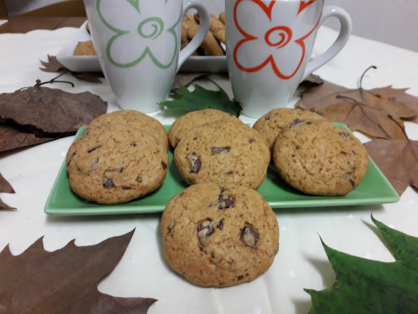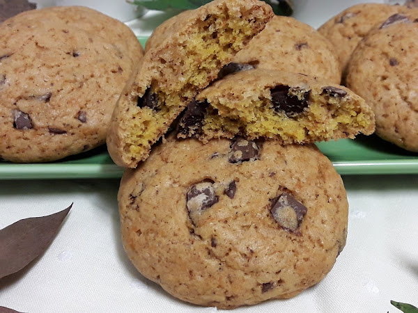 Os comento: he utilizado en vez de las gotas o perlitas de chocolate, chocolate con leche en trocitos pequeñitos, eso a vuestro gusto. La calabaza al asarla pierde bastante agua, por eso os aconsejo siempre poner más cantidad.