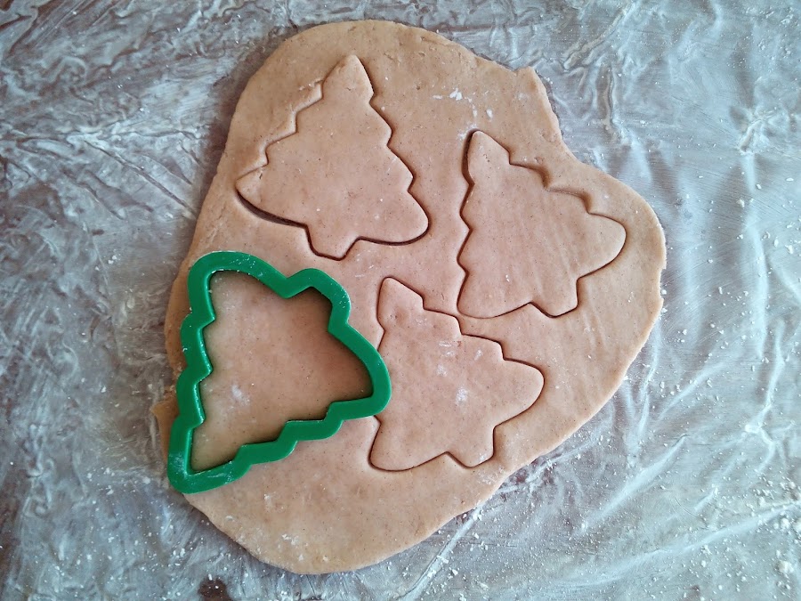 Extendemos la masa con el rodillo hasta medio centímetro de espesor y cortamos las formas deseadas.