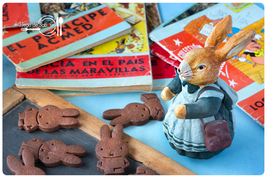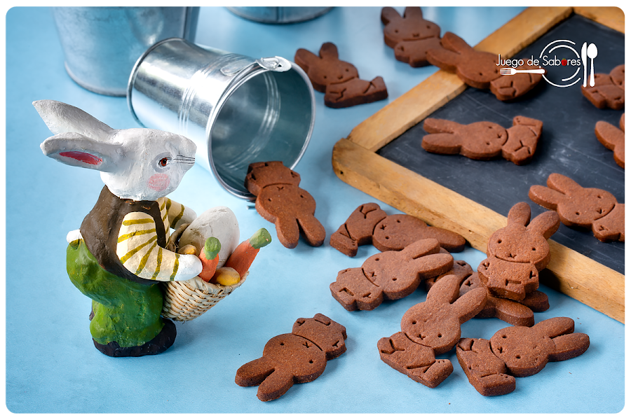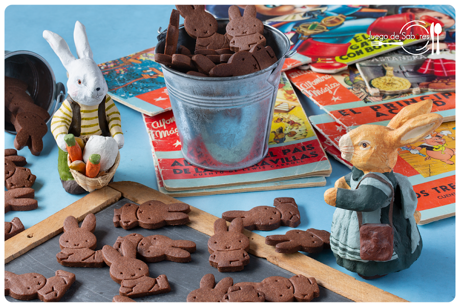 De este confinamiento seguro que saldrán muchos niños pasteleros y cocineros. Y es que después de tres meses de reclusión entre las cuatro paredes de la casa, una ya no sabía qué hacer para entretener a los niños, los grandes olvidados de la pandemia a quienes se les asignó la franja de mayor calor para salir a la calle, a quienes se prohibió relacionarse con otros críos. Total que hubo que agudizar el ingenio, inventarse historias y amasar, amasar mucho para hacer galletas como éstas, conejos que han proliferado por doquier. A papa conejo y a mamá coneja se les ha llenado la madriguera de conejitos de chocolate de largas orejas y ojillos vivarachos. Sabido es que los conejos se reproducen con rapidez y la prueba de ello la tenemos sobre la mesa.