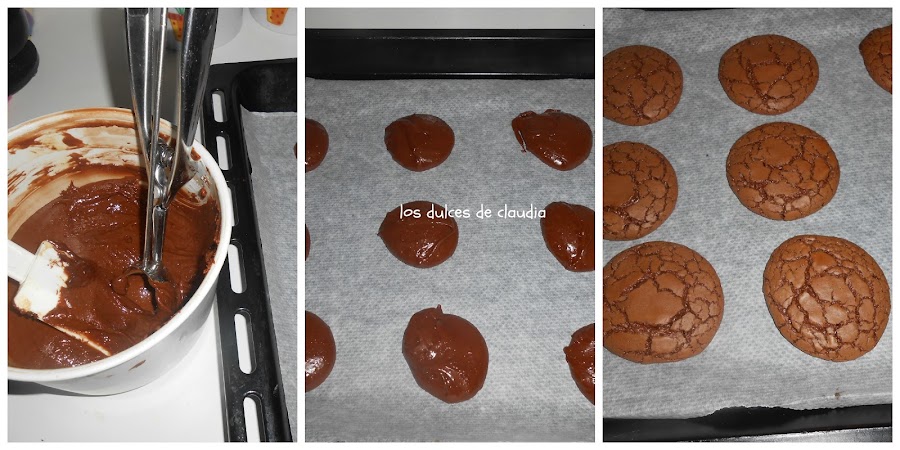 Formar las galletas con la ayuda de una cuchara de hacer helado sobre papel de cocina. No tan juntas porque se expanden un poco con el calor.