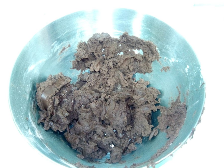 Posteriormente vamos añadiendo la mezcla de harina con cacao y finalmente echamos la leche de dos veces.