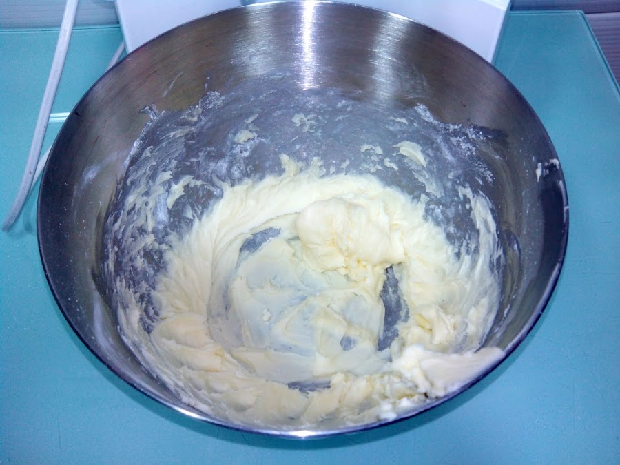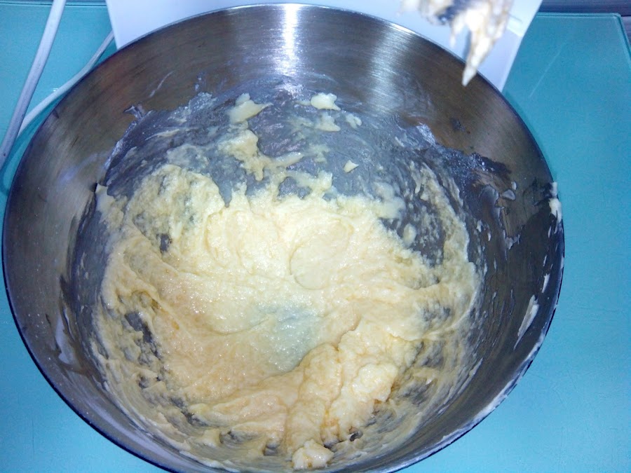 Batimos la mantequilla con el azúcar hasta que esté totalmente integrada y la mezcla sea cremosa, luego añadimos el huevo un poco batido.