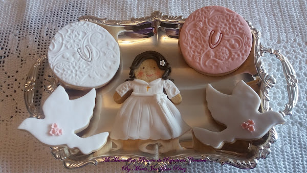 El fin de semana pasado estuvimos celebrando la Primera Comunión de Valeria y lo pasamos realmente bien. Os cuento ésto, porque os voy a enseñar las galletas decoradas con fondant que le regalé.