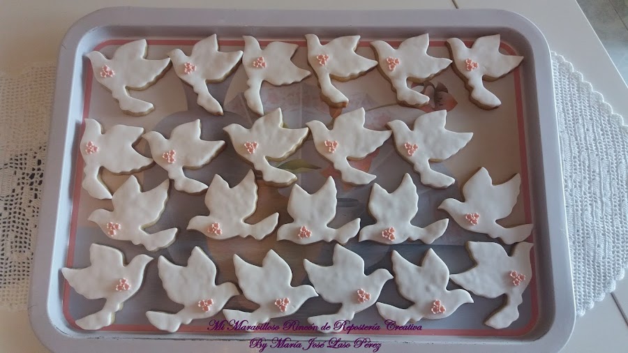 Un clásico que me encanta son las palomas de la paz, tan bonitas que no podía dejar de incluirlas. Con un detalle en contraste en rosa pálido.